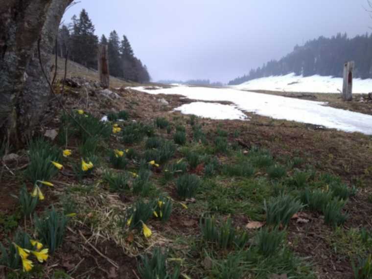 En fondant,le ruban neigeux du chemin de la merde à la Vue laisse la place à de belles demoiselles jaunes !