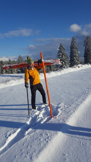 Bonjour les Pros! On a construit un mirador pour voir ton travail de loin avec une vue sur Pouillerel au loin depuis Charquemont!!!